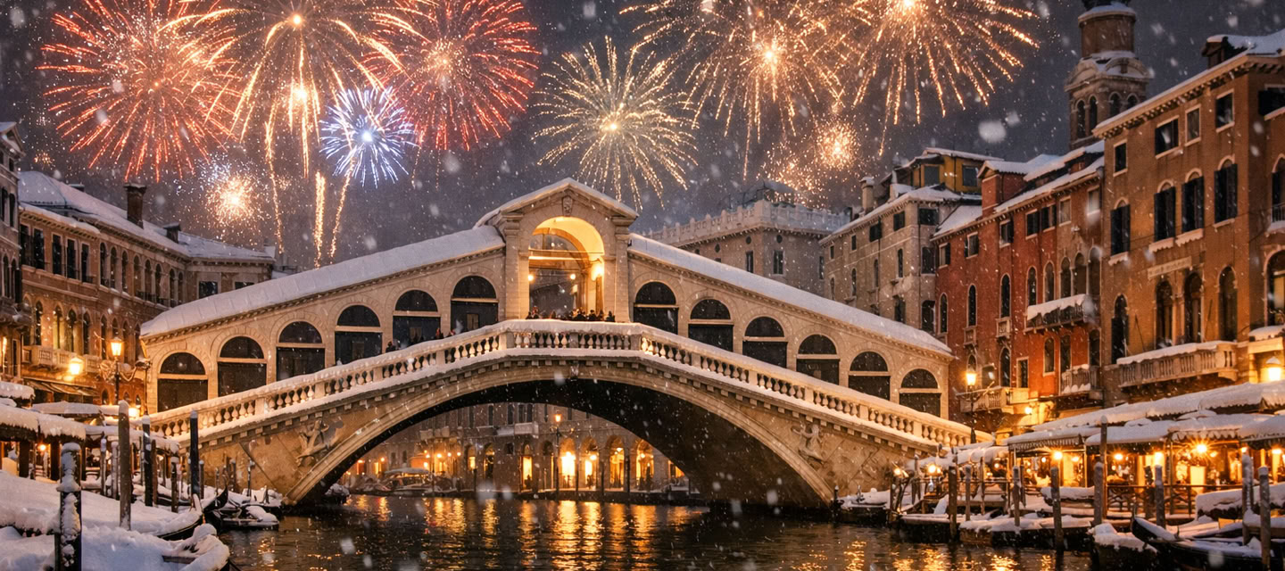 Vivi il Capodanno a Venezia con una cena speciale: due menù esclusivi, di carne e di pesce, ti aspettano la sera di mercoledì 31 dicembre per brindare insieme all’arrivo del nuovo anno.
